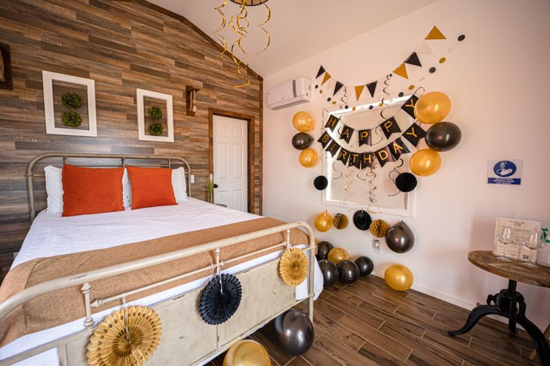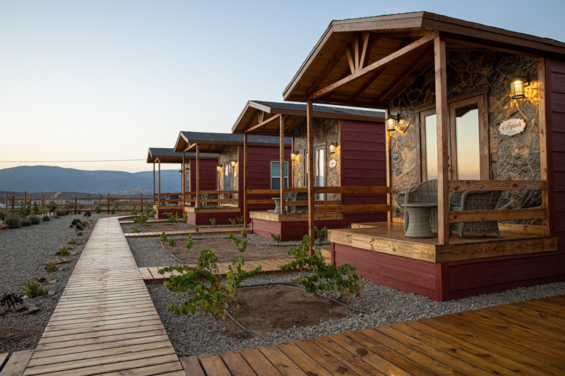 Cada una de las cabañas se encuentra bellamente decorada, además de que cuenta con su baño privado y terracita, ideal para disfrutar de uno de los deliciosos vinos que Tres Vides te ofrece.